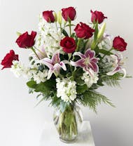 Traditional Christmas flowers and plants include: Poinsettias, amaryllis, red roses, holly, ivy, mistletoe, and Christmas cactus. However, you don't have to stick with tradition when you send a floral gift for Christmas! We also love centerpieces and bouquets made with lilies, chrysanthemums, tulips, and elements like pine cones and fir boughs.